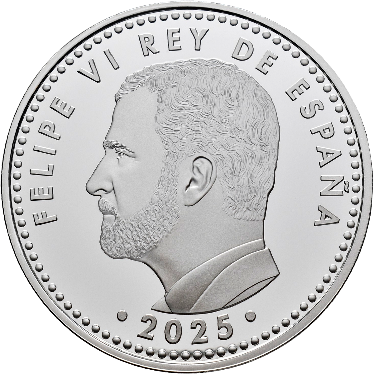 En este caso se trata de una moneda de plata de 8 Reales, en cuyo anverso se reproduce el retrato a izquierda de Su Majestad el Rey Don Felipe VI.